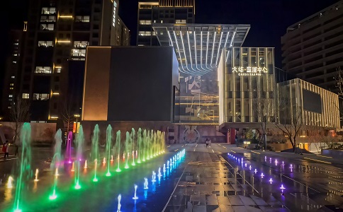 音樂噴泉是運動的畫卷,跳動的音符,流淌的旋律,是聲、光、電與水結(jié)合的詩!